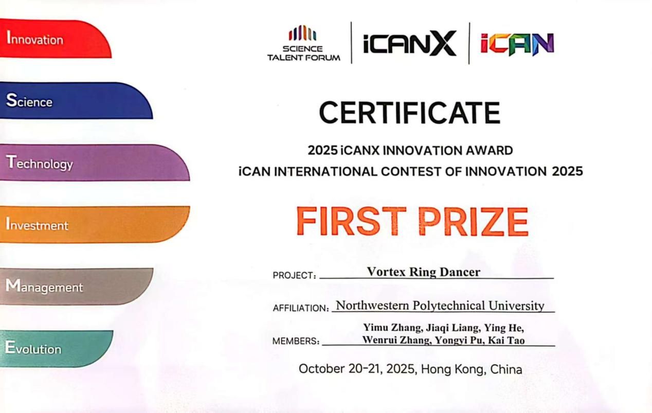 “Vortex Ring Dancer(涡环舞者)”项目团队经过校赛、省赛和国赛层层选拔,从全国1518所高校的32144支团队中脱颖而出,与来自慕尼黑工业大学、香港大学等全球近20所顶尖高校的队伍同台竞技,最终斩获国际总决赛冠军。这也是继2021年番号鸽
