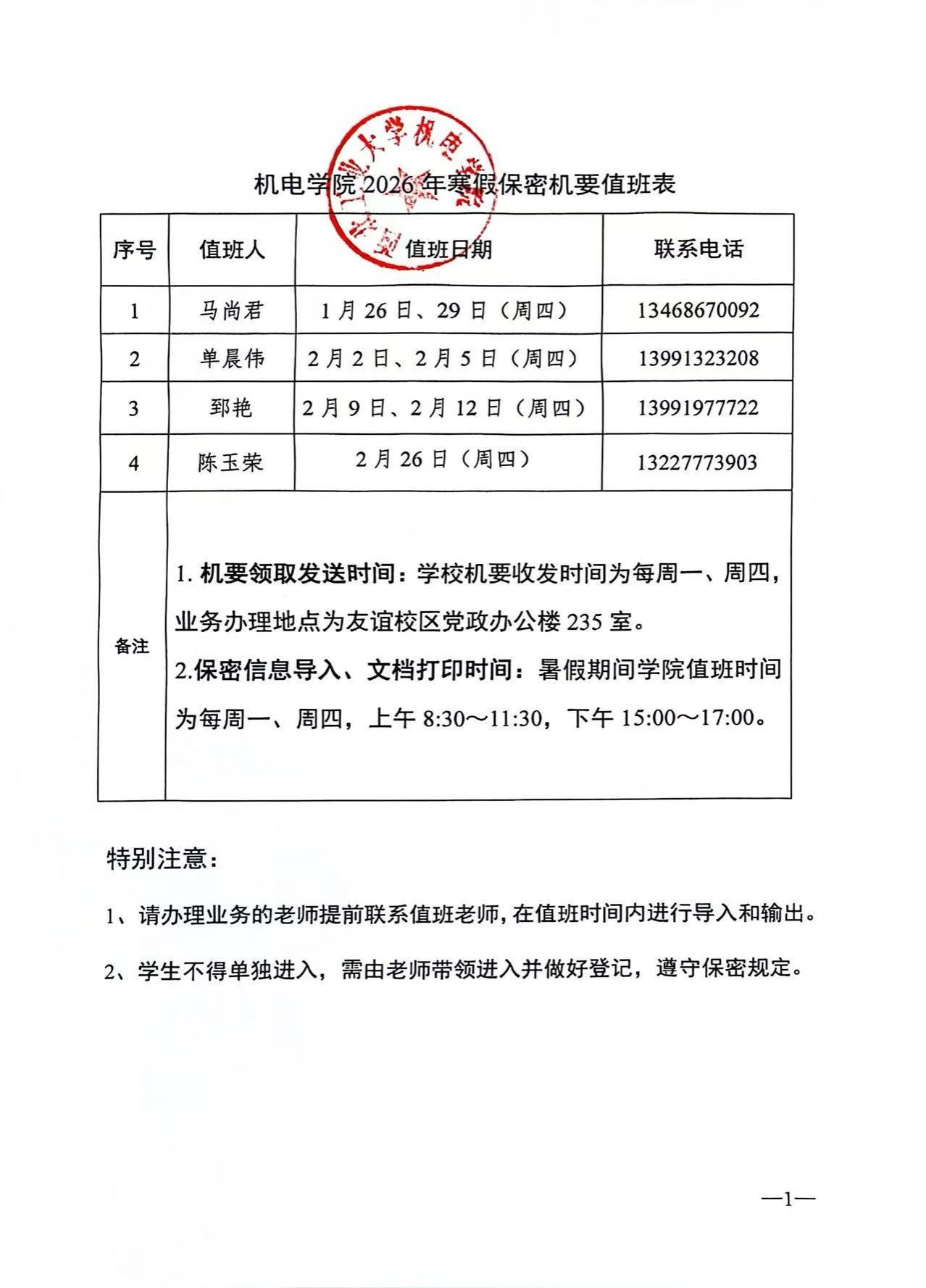 番号鸽 2026年寒假保密机要值班表